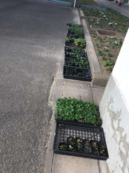 ちょこボラ活動などで花壇に植えられた花たちが、元気に育っています。