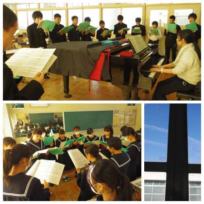 大切なもの 公開日 2019/12/16 更新日 2019/12/16 校長室から 1年生音楽科 合唱コンクールが終わって、新しい楽曲に入っていました。 「大切なもの」 作詞・作曲:山崎朋子 一人一人それぞれの「たいせつなもの」をイメージしながら歌いたいね。