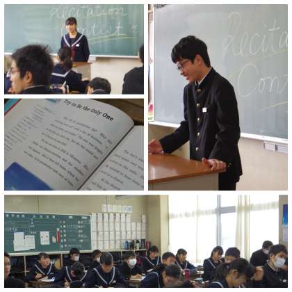 Recitation 公開日 2020/01/20 更新日 2020/01/20 校長室から 2年生は、Recitation Contest なかなか「暗唱」するのも難しいかな。 文字通り、「朗読」のようになるためには、声に出す練習が大切ですね。