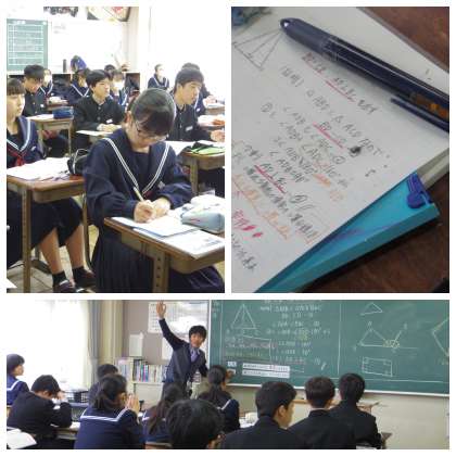 2年生数学科 数学における「定義」と「定理」の違いを話し合っています。