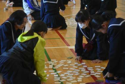 寒さをものともせず、気迫のこもった表情で札と向き合いました。