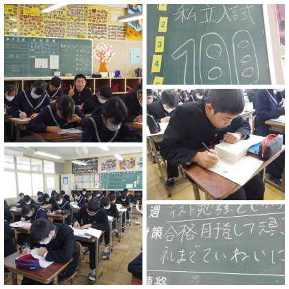 私立・専修学校一般入試の1日目 登校組は、2学級合同で自学自習です。 受験組は、日頃の成果を十分に発揮して!