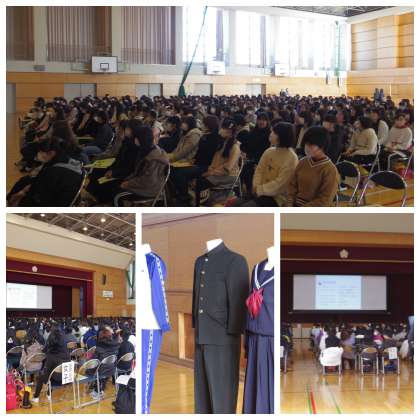 ようこそ中部中学校へ。ここが4月からの君たちの学び舎となります。