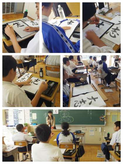 白の美 公開日 2018/10/12 更新日 2018/10/12 789組 今日の国語は、書です。 教頭先生から「白の美」を教えていただきました。 「大志」を書きます。 「志」の方を何度も練習です。 姿勢よく、静かに...
