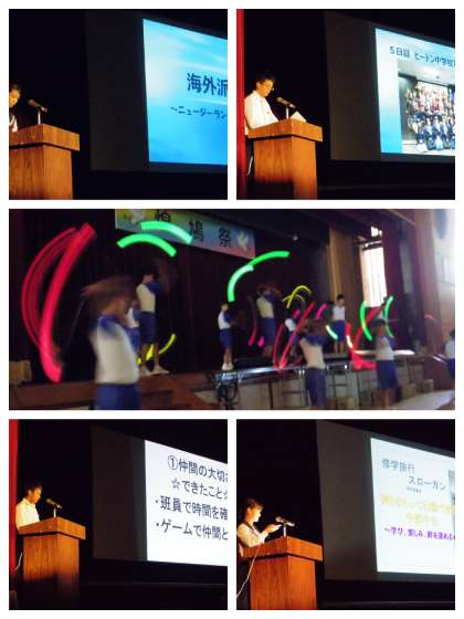 舞台発表 公開日 2018/10/19 更新日 2018/10/19 校長室から 執行部によるオープニングセレモニー 舞台発表 前半の部 1 翔燦太鼓演奏 2 海外派遣報告 3 林間学校報告 4 修学旅行報告