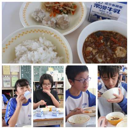 今日の給食 803kcal なす入りマーボー・しゅうまい・切り干し大根のあえ物