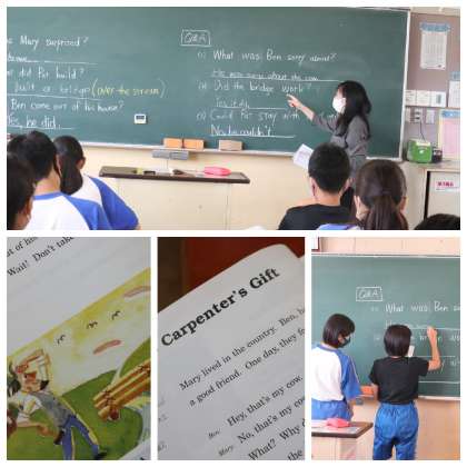 The Carpenter's Gift 公開日 2020/09/09 更新日 2020/09/09 校長室から 2年生英 語科は、「The Carpenter's Gift」 Let's Read 英語の物語を読む学習 なかなかすてきな大工さんだなあ・・・
