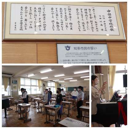 校歌 公開日 2020/09/11 更新日 2020/09/11 校長室から 音楽室から校歌が聞こえてきました 7・9組のみんなの声でした 今年度は全校での校歌斉唱を一度も聞いていない みんなで歌う、校歌を歌うこの尊い行為ができていない ※ 卒業の歌(8分40秒過ぎから校歌斉唱)