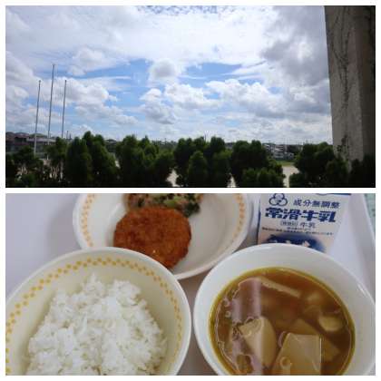 今日の給食 764kcal 肉団子のスープ・れんこんサンドフライ・チンゲンサイの中華あえ