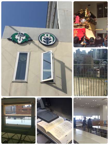 玄関横には地域の山車蔵があり、学校の周りは柳橋市場