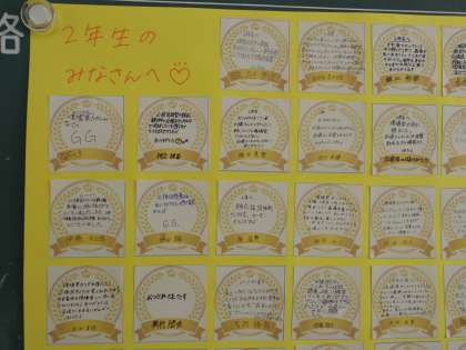 ブロックの後輩へ一人ずつがメッセージを書いてあります。