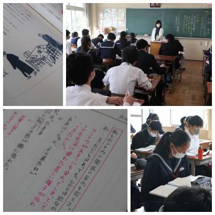 ルントウ 公開日 2020/10/27 更新日 2020/10/27 校長室から 3年生国語科 光村図書の中学3年の定番 『故郷』魯迅 著、竹内好 訳の授業です 「まる読み」して全員で読み進めていきます