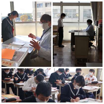 Conversation 公開日 2020/11/05 更新日 2020/11/05 校長室から 2年生英語科 となりの教室にはハミルトン先生 Conversation testです 1対1 やあ、緊張するなあ・・