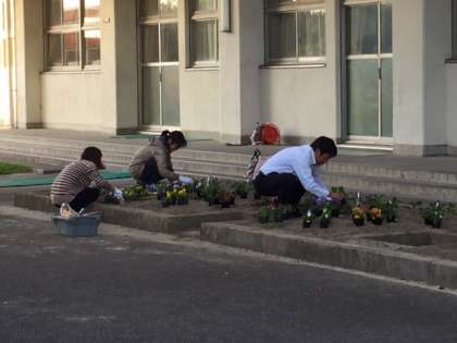 理事会後、総務部は花壇に苗植えをしていただきました。