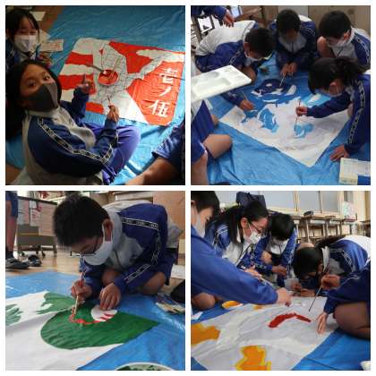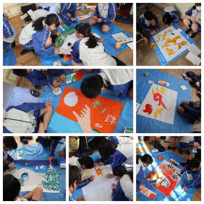 学級旗 公開日 2020/12/01 更新日 2020/12/01 校長室から 1年生は、学級旗の共同製作 1学級5グループに分けて、学年で30枚の旗を作製します コンペティションになっていますから、やる気満々! 1年生は、意欲的に活動ができるところがすてき 完成が楽しみですね!