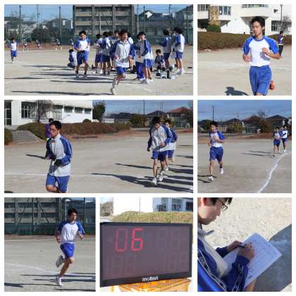3年男子体育科 男子の持久走は、10周 タイムとの戦いです 冬空に凜々しい力走