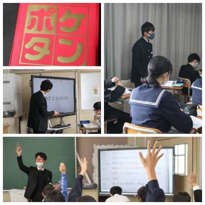 1年生英語科 感嘆文の学習です 電子黒板の拡大や書き込み機能を使って、読みを深めていきます