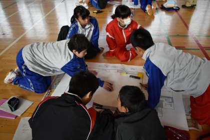 グループに分かれて、災害時の避難所を想定して、要配慮者や災害時要援護者にも適切な配置を考えました!