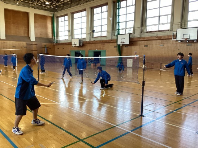 3年3組の体育では、今日からバドミントンが始まりました。最初なので、まずはサーブの打ち方とラリーを続けることに重きを置いています。一生懸命シャトルを追いかける姿が印象的でした。
