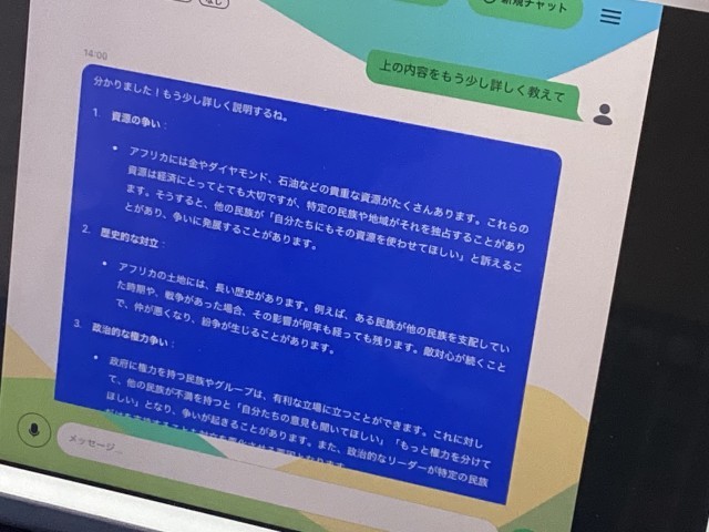 生成AIを利用して、アフリカの問題点を洗い出し、その問題に対する自分の考えを書いていきます。