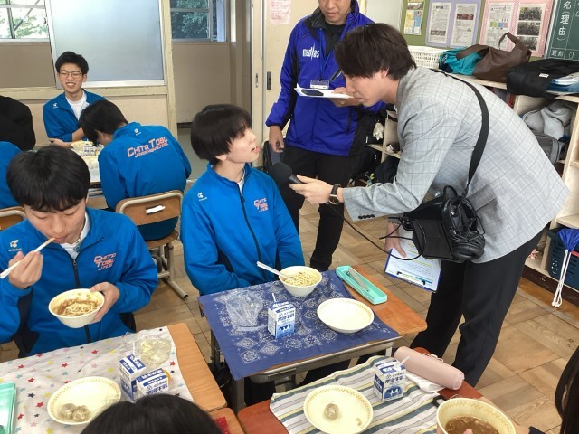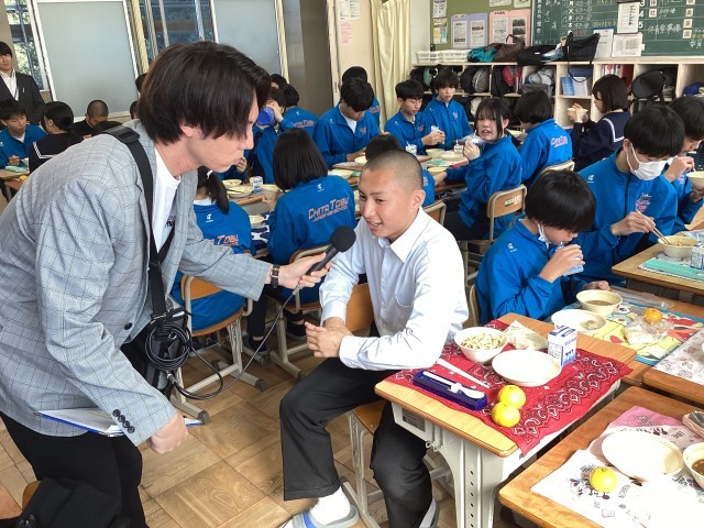 本日3年3組がメディアスエフエムの「学校の昼休み中継」に出演しました。