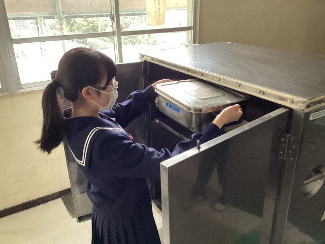給食を美味しく食べた後は給食当番がワゴンへ食器や食缶を返却します。