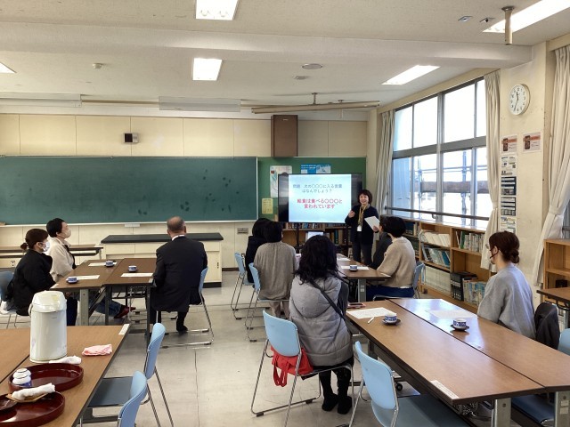知多市の栄養教諭の先生のお話を聞いた後、給食を試食しました。