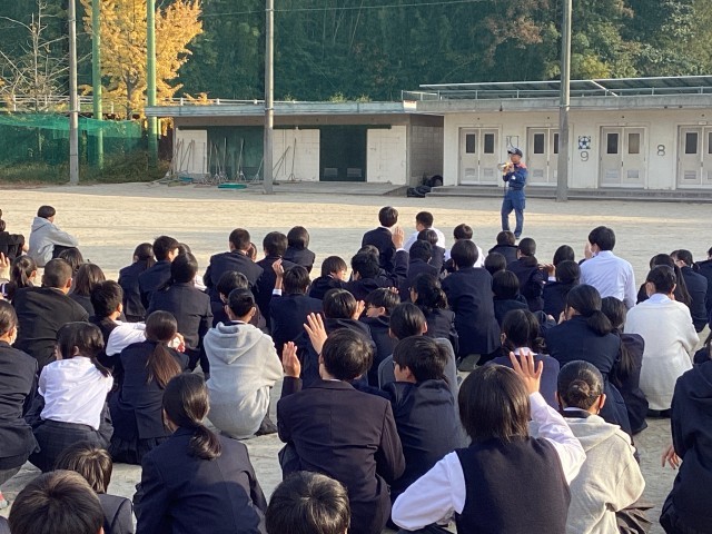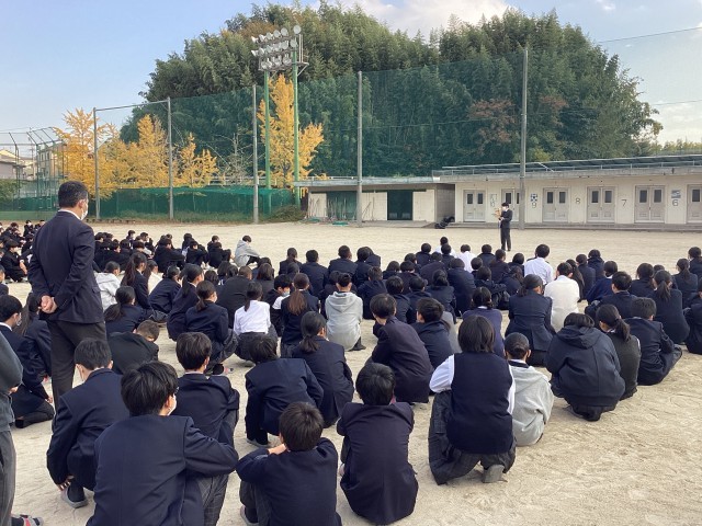 避難後、人員確認のあり方や、スマホ等で身近になったリチウムイオン電池の危険、校外で火災にあった場合の命の守り方について話がありました。