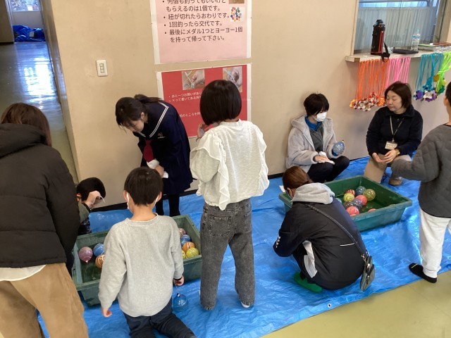 今年のテーマは「縁日」。射的・輪投げ・ヨーヨー釣りの3つのブースに分かれて交流しました。