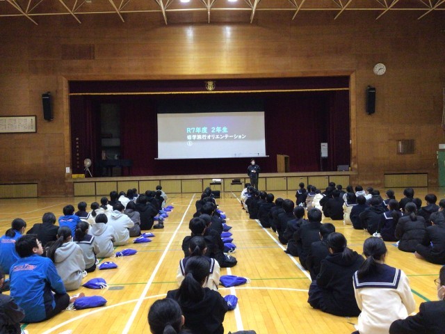 2年生は6時間目に、来年度の修学旅行に向けたオリエンテーションを行いました。