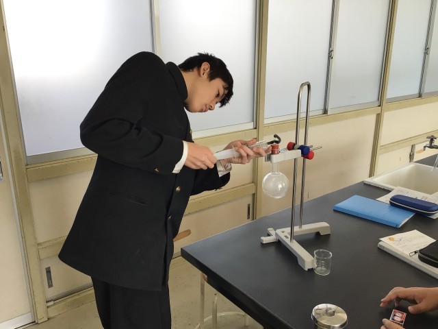 4時間目、6、8組の理科ではフラスコの中で雲を作る実験を行いました。