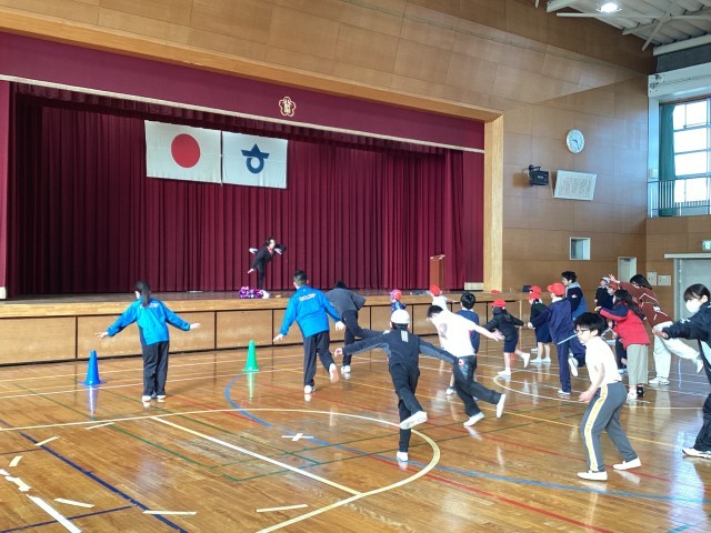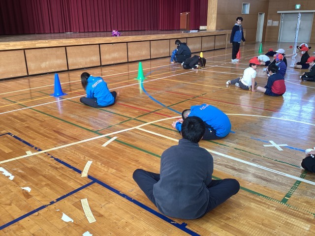 今日も678組は新田小学校を訪れ、小学生と合同で体操を行いました。