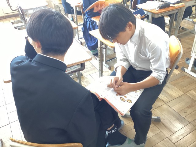 2/16 2年生 英語 公開日 2026/02/16 更新日 2026/02/16 2年生 1時間目 2年1組 英語音読をしています。読み方がわからないところは、お互いにヒントをあげて協力して取り組んでいました。