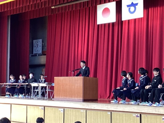 2/19 後期生徒総会 公開日 2026/02/19 更新日 2026/02/19 東部中の様子 6時間目、体育館で後期生徒総会を行いました。各委員会から今年度の活動報告があり、議事は滞りなく承認されました。学校をよりよくしていこうとする姿勢が感じられ、生徒主体で会が運営される様子が見られました。最後に校長先生からお話があり、総会を締めくくりました。