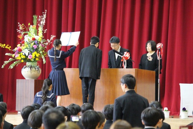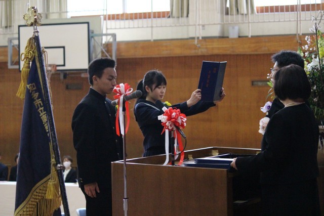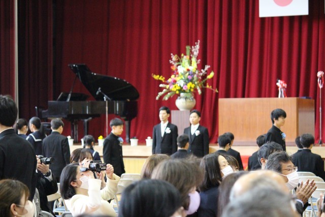 3/6 第43回卒業式② 公開日 2026/03/06 更新日 2026/03/06 東部中の様子 卒業式の様子です。 卒業生入場、証書授与、校長式辞、在校生送辞、卒業生答辞と、式は厳かな雰囲気の中で進みました。 それぞれの場面で語られる思いのこもった言葉に、これまでの学校生活や仲間との思い出がよみがえり、会場はあたたかな感動に包まれました。 +6