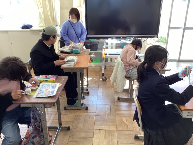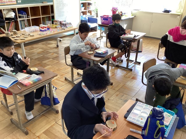 3/10 678組 新田小との交流会 公開日 2026/03/10 更新日 2026/03/10 678組 678組では、新田小学校のひまわり学級の6年生を招待し、木の飾り作りを行いました。それぞれがいろいろなアイデアを出しながら、集中して制作に取り組んでいました。活動の中で、中学生が小学生に作り方を優しく教える姿も見られ、温かい交流の時間となりました。6年生にとっては、中学校での生活を少しイメージすることができる機会にもなったのではないでしょうか。