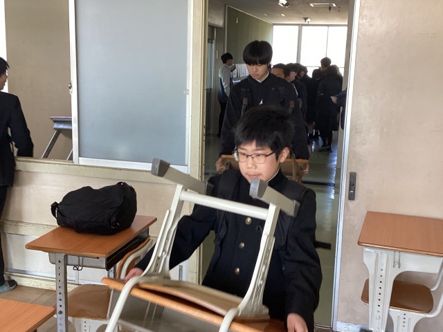 3/24 机・椅子の移動 公開日 2026/03/24 更新日 2026/03/24 東部中の様子 今年度最後の学活を終えて、机・椅子を新学年の教室に運びます。新しい学年へ期待の気持ちが、みんなの表情から溢れています。 +3