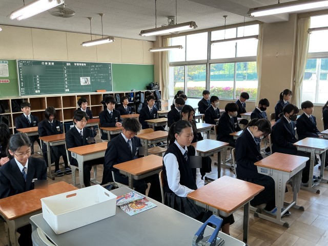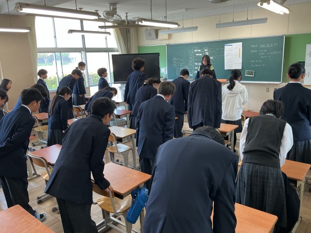 8時30分までに着席した生徒たちは、その後、黙想を行い、心を落ち着かせて一日を始めています。