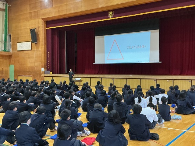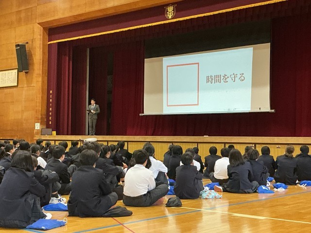 また、生徒指導担当からは「あいさつ」と「時間を守ること」の大切さについて、現職教育担当からは「目を見て話を聞くこと」を意識してほしいという話がありました。