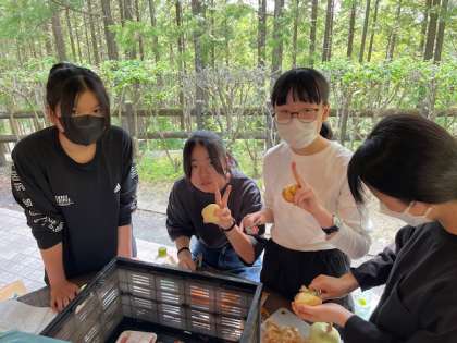 続カレー作り。みんなで協力しています。