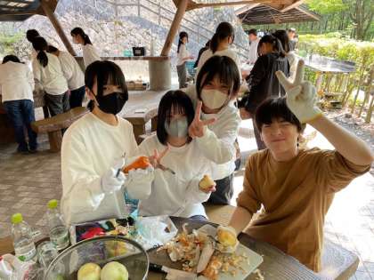 続カレー作り。食べやすい大きさに野菜を切っていますね。