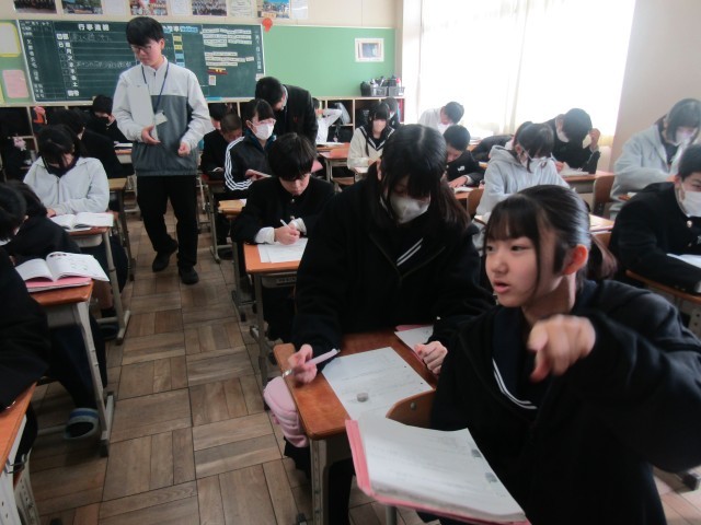 1/10 授業風景 公開日 2025/01/10 更新日 2025/01/10 東部中の様子 生徒は授業の中で、先生や仲間の話をしっかり聴くことを意識して、他の考えを参考にしながら自分なりの考えをまとめています。 +2