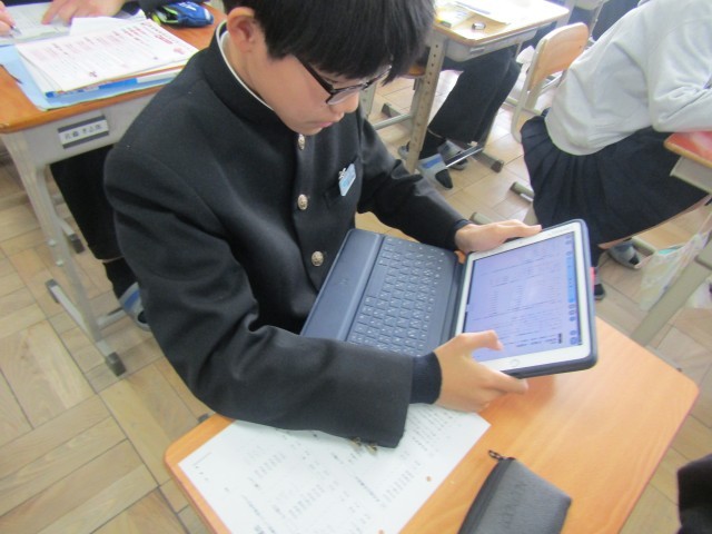 1/15 授業風景 公開日 2025/01/15 更新日 2025/01/15 東部中の様子 生徒は、各教科の課題に対して、学習を深めるためのICTの利用の充実を意識して、タブレットを効果的に活用しています。タブレットの活用場面、活用方法など、生徒は自ら選択して前向きな学習に取り組んでいます。 +2