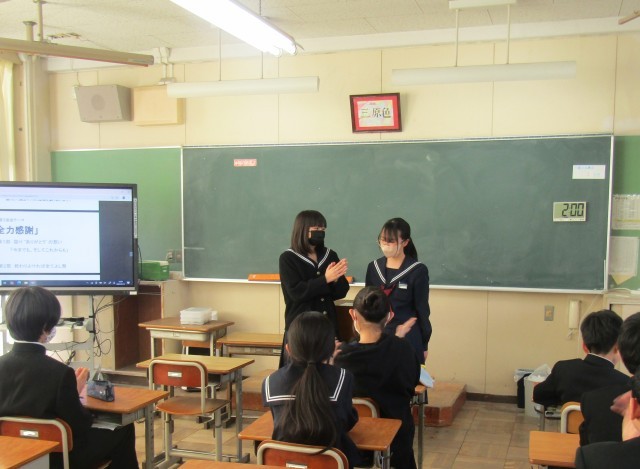 6時間目、2年生の各教室では清掃活動を振り返り、係決めを行いました。学級三役が中心となり、話し合いを進めることができました。1年生の各教室では、3年生を送る会に向けての準備が始まりました。実行委員に進んで立候補する生徒の笑顔が印象的でした。