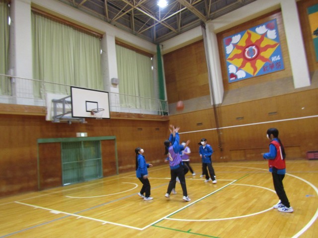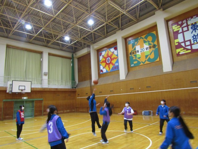 体育の授業(2年生)では、仲間と協力して生き生きとバスケットボールに取り組む生徒の姿が印象的でした。生徒は、フェアプレーを意識してボールを保持し、たくさんのシュートを打って得点を重ねています。
