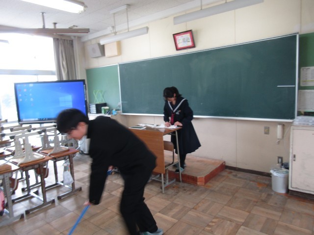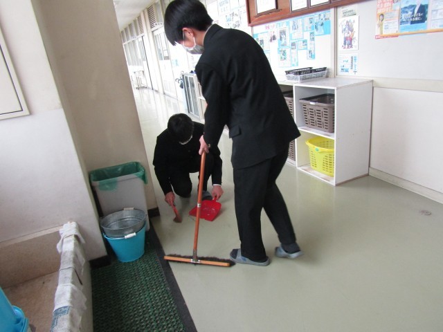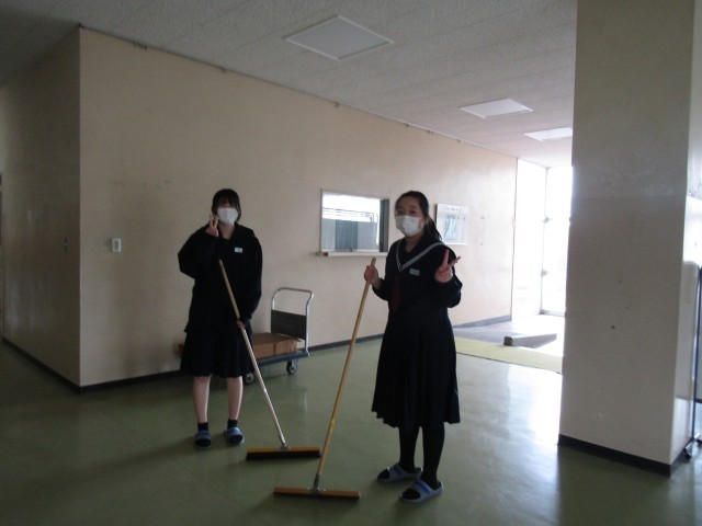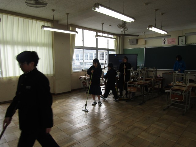 それぞれの清掃場所で黙々と清掃活動に取り組む生徒の姿が印象的でした。来週は、ワックスがけと大掃除が行われます。隅々まできれいに整えて、今年度を締めくくりましょう。