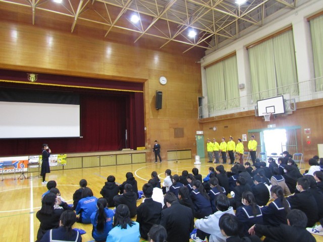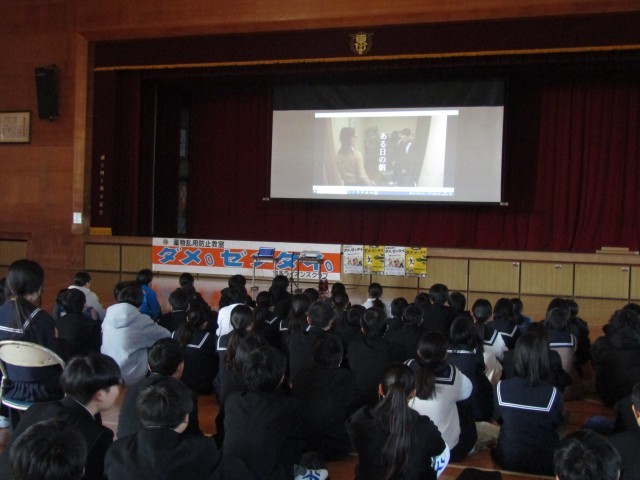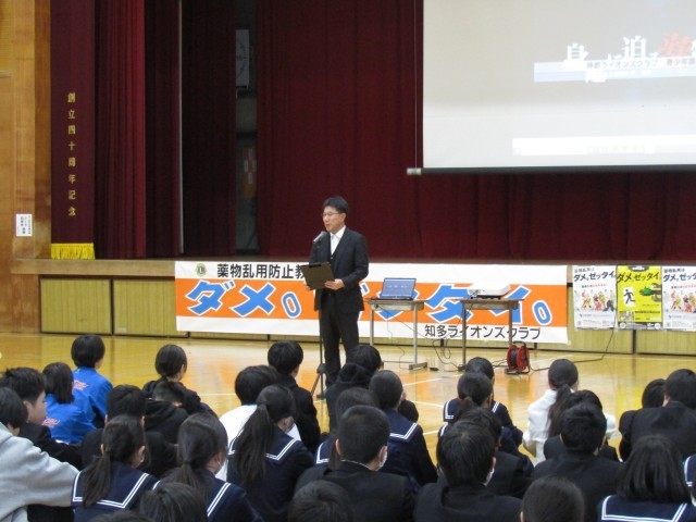 3/14 授業風景 公開日 2025/03/14 更新日 2025/03/14 東部中の様子 6時間目、知多ライオンズクラブの方々をお招きして、体育館にて薬物乱用防止教室(1、2年生)を行いました。生徒は、講師の方々の講話や映像資料から、薬物が身近な問題であることや薬物の危険性、中毒性について学ぶことができました。今回の学びを日常生活に生かし、安全、安心な生活へとつなげましょう。 +5