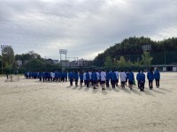 運動場は昨日の雨で少しぬかるんでいますが、1・2時間目は1年生が体育の部の学年練...