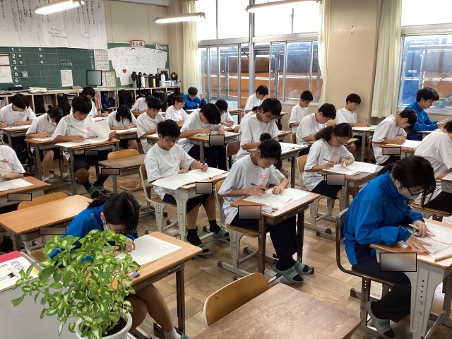 2学期中間テスト1日目です。生徒たちは集中して問題に取り組んでいました。