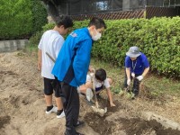 678組では、育てていたサツマイモの収穫を行いました。土の中からは大きなサツマイモがたくさん出てきて、生徒たちからは歓声が上がっていました。